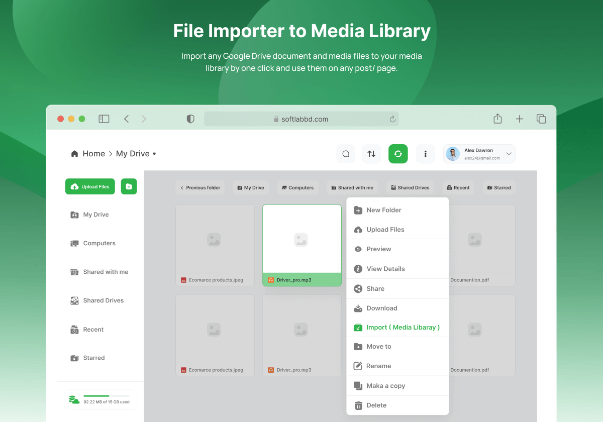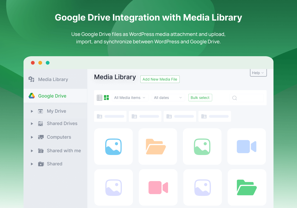 - 媒体库集成:将Google Drive文件作为媒体附件直接用于WordPress,支持上传、导入和同步